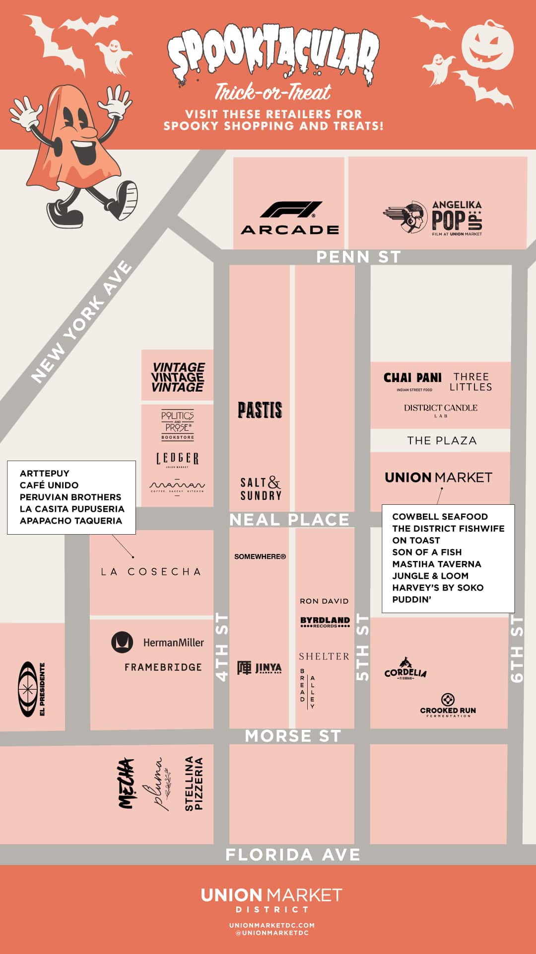 Trick-or-Treat with us Union Market District style. Join us for a night of family-friendly trick-or-treating around Union Market District. Visit participating retailers for spooky shopping and treats! Free and open to kids 12 and under.